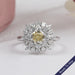 Yellow Cushion Cut Lab Diamond Sunburst Cluster Set Halo Ring