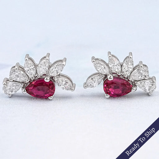 Vollständige Details anzeigenPear Ruby Gemstone And Marquise Diamond Earrings
