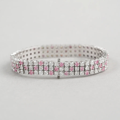 Vollständige Details anzeigenAusgefallenes rosa Armband mit dreireihigen Labordiamanten im Rundschliff
