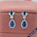Pear Blue Gemstone And Tapered Baguette Halo Drop Earrings