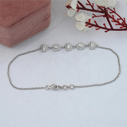 Vollständige Details anzeigenHeart And Pear Shape Five Stone Halo Bracelet