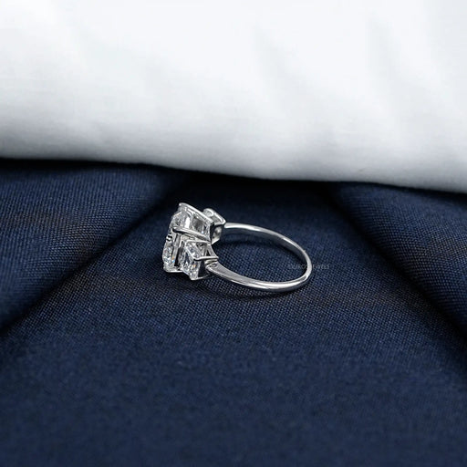 Square Radiant Cut Three Stone Halo With Accent Ring